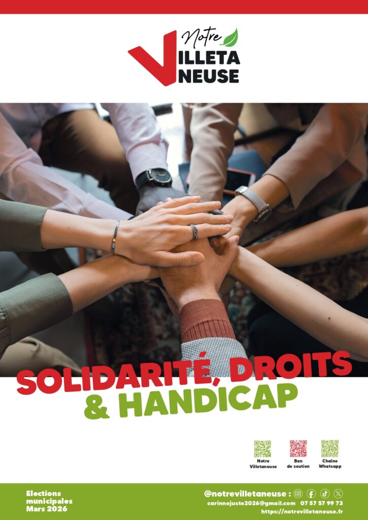 • Handicap et Inclusion : Création d’un lieu de répit et d’accompagnement (dossiers MDPH), soutien aux associations locales ayant pour objet le handicap, et recherche de la mise en place d’un service de transport gratuit pour les rendez-vous médicaux.