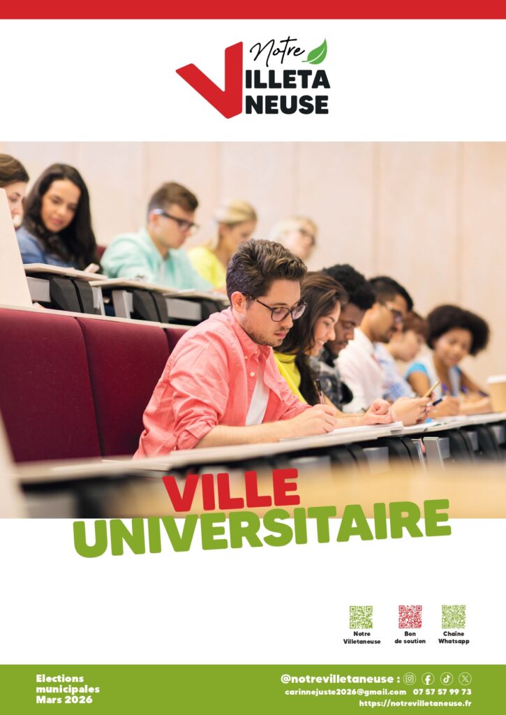 - Nous affirmons que l’Université est une chance pour Villetaneuse et que la Ville doit redevenir une véritable “Ville Universitaire”.